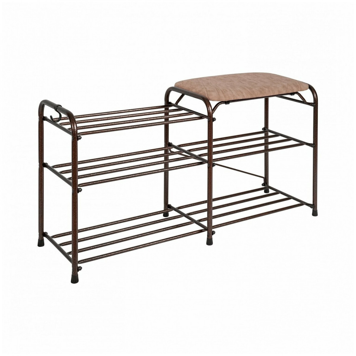 Подставка для обуви ЗМИ, 3-х полочная с бежевым сиденьем, Медный антик, 89х30х48см. купить в Сочи недорого с доставкой, цены на сайте