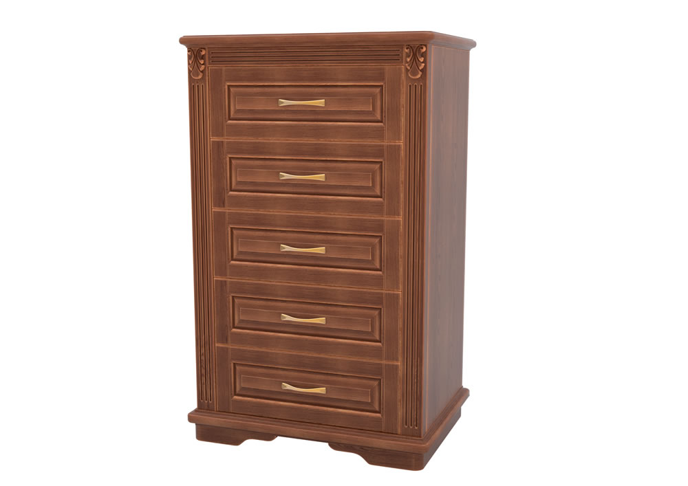 Универсальный предмет мебели — изысканный и функциональный комод — колонка «Палермо» занимает немного места в интерьере спальни или домашнего кабинета, благодаря своим компактным размерам. Пять вместительных выкатных ящиков оснащены телескопическими направляющими в базовой комплектации и направляющими с системой довода опционально. Разнообразие цветовых решений на массиве бука и ясеня позволяет легко дополнить интерьер любых цветовых решений.