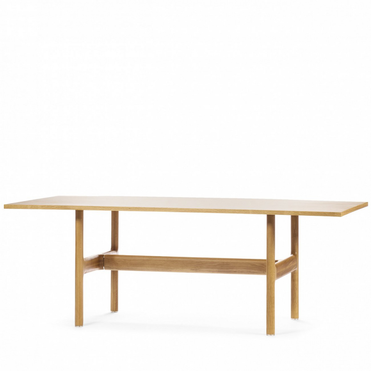 Опора и столешница из натурального дерева естественных оттенков — сложно придумать более точное воплощение скандинавского минимализма, чем этот стол. Его дизайн навеян простейшими инструментами — козлами и верстаком, издревле стоявшими в мастерских у ремесленников. Утилитарность без излишеств — вот философия его создателей.