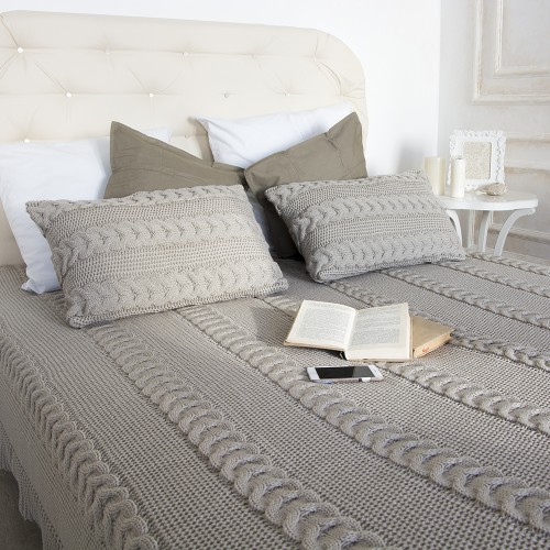 Комплект для спальни - отличный способ обновить интерьер, не делая ремонта и создать нежную атмосферу мягкости и уюта в вашей спальни! Плед крупной вязки, двуспальный. С ним каждое утро будет нежнее, а вечера теплее и уютнее. Станет стильным атрибутом для фотосессии, отличным компаньоном в дорогу или неотъемлемой частью пикника на свежем воздухе. Связан из гипоаллергенных материалов, приятно согревает, но отводит лишнее тепло.