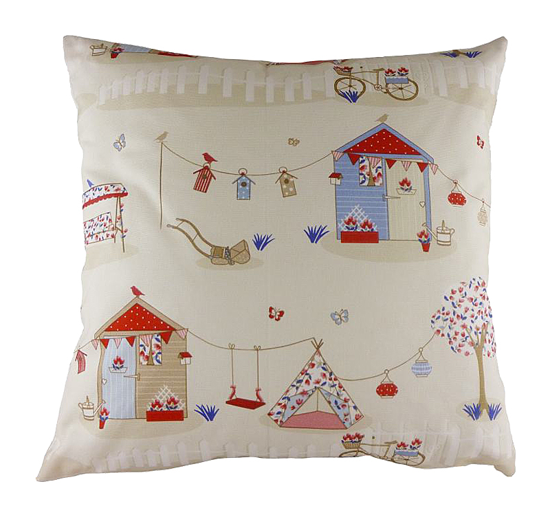 Бежевая декоративная подушка с изображением разноцветных атрибутов летнего отдыха — домика, палатки, велосипеда, качелей. Хорошо поддерживает спину и поможет расслабиться. Подушка также будет отличным сувениром и оригинальным подарком. Подарите себе и близким летнее настроение!